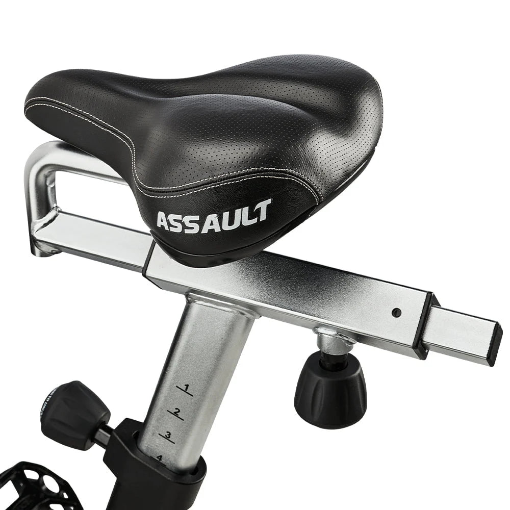The Assault Fitness AirBike is a high-intensity exercise bike designed for rigorous cardiovascular workouts. Known for its durability and versatility, it features air resistance that adjusts dynamically to the user's effort, providing a challenging full-body workout. The AirBike is equipped with a comfortable seat, adjustable handles, and a clear LCD console for tracking metrics like distance, calories burned, and heart rate. It's popular in gyms and home fitness setups for its ability to accommodate both beginners and seasoned athletes looking to enhance their conditioning and strength.